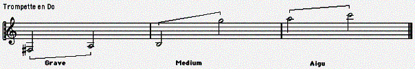 Trompette en Sib : Grave : Mi2 -> La#2 Médium : Si2 -> Sol#4 Aigu : La4 -> Do5